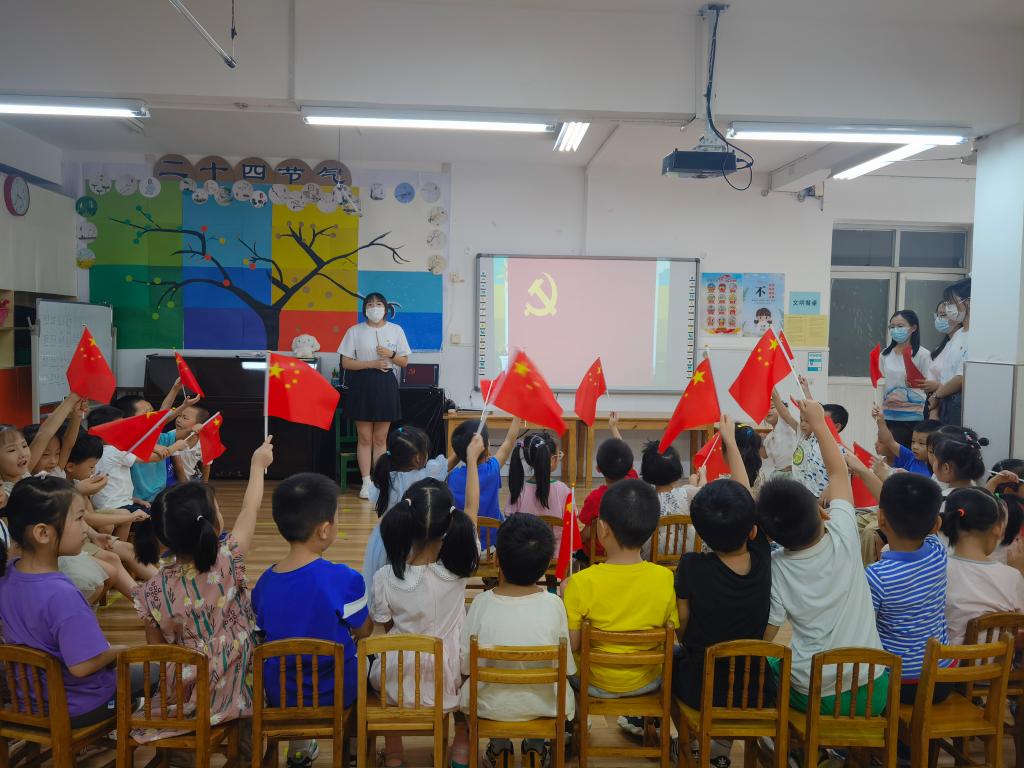 “扬帆奋进新征程,童心献礼党的二十大”,活动最后,支部全体党员与小朋友们一起喊出响亮口号,表达了对党的敬意和听党话、跟党走的决心。希望通过此次活动,在孩子们心理种下一颗爱国爱党的种子,让红色基因代代相传。(图文/傅敏  审/刘婷)
