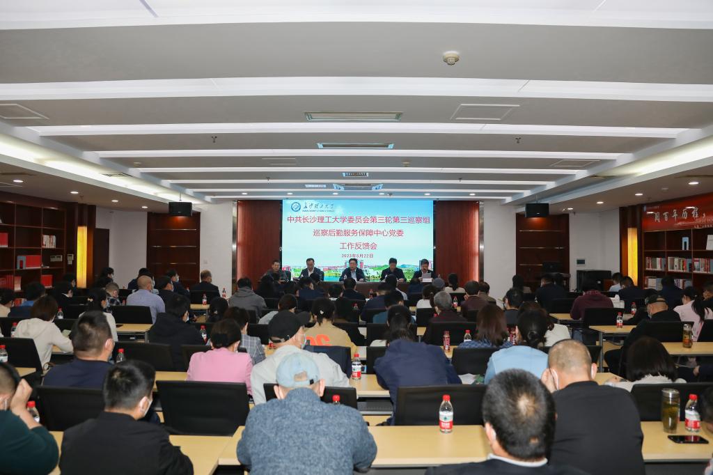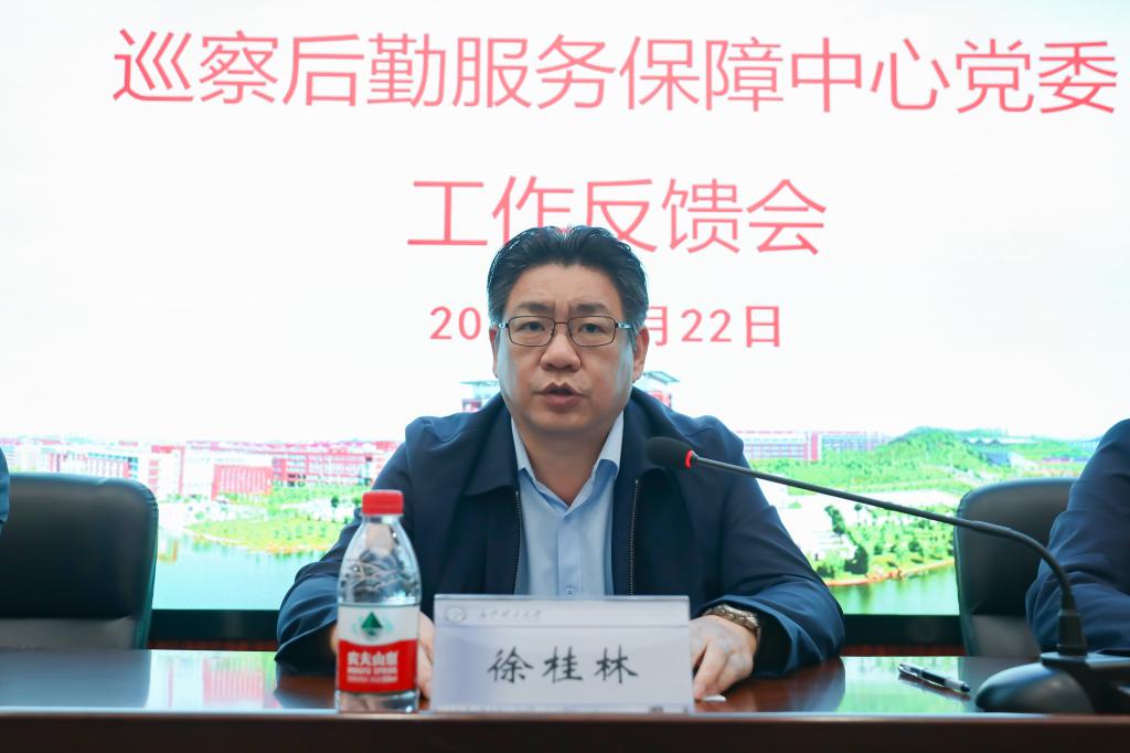 根据学校巡察工作领导小组统一部署,5月22日下午,学校党委第三轮校内巡察第三巡察组巡察后勤服务保障中心党委工作反馈会在云塘校区图书馆B102报告厅召开。校纪委书记、省监委驻太阳成集团tyc122cc入口监察专员、党委巡察工作领导小组副组长徐桂林出席反馈会并讲话,党委第三巡察组组长易贵民分别向后勤服务保障中心党委领导班子和全体教职工通报了巡察反馈意见。校纪委副书记、监察处处长方文彬,巡察组组长、副组长,后勤中心党政班子全体成员、各二级部门副职以上负责人及管理骨干、全体党员及入党积极分子、职工代表大会全体代表参加反馈会。后勤中心主任孔蔚湘主持会议。