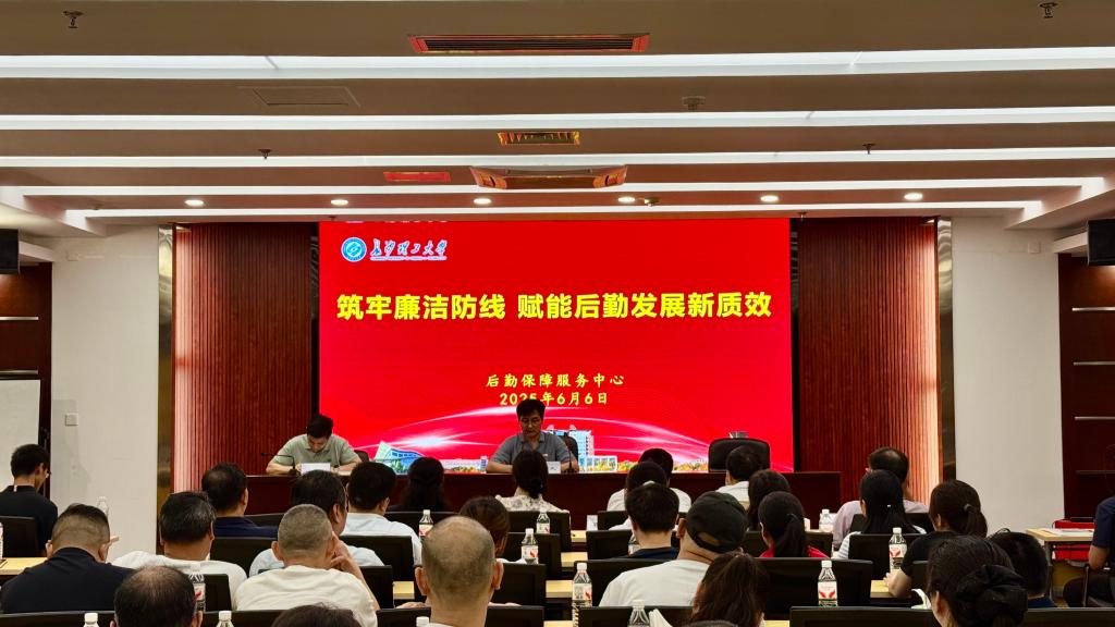 6月6日下午,后勤中心在图书馆B102会议室召开警示教育大会。后勤中心副主任周娇林主持会议。中心全体领导班子成员、各部门班组长以上管理人员、托管食堂项目经理、施工入围单位负责人、原材料入围单位负责人代表共111人参加会议。