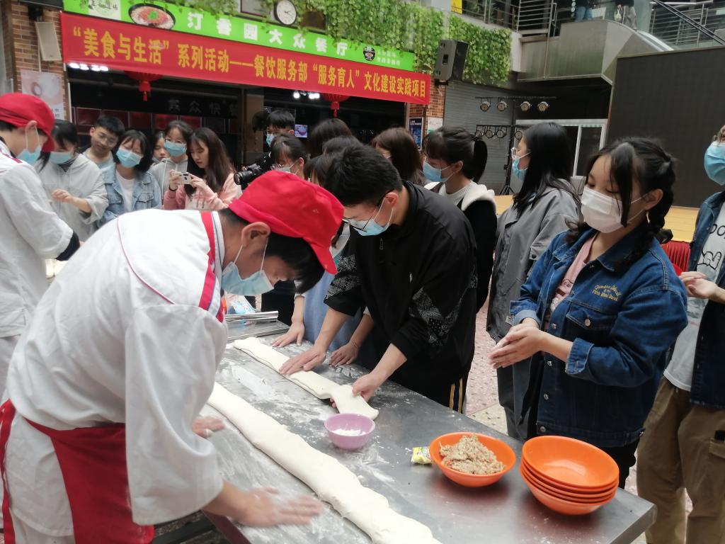 为彰显后勤人“服务育人”使命担当,鼓励学生劳动实践,体会劳动创造美好生活,2021年4月20日下午,后勤餐饮部在汀香园一楼组织开展了“美食与生活”系列活动——学做白案,推进“服务育人”文化建设实践项目落地。