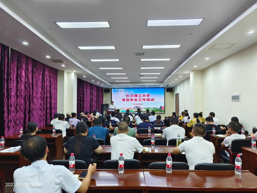 9月8日下午,后勤中心餐饮服务部(食品安全管理办公室)在国际学术交流中心组织开展了新学期食品安全工作专题培训会,暮云市场监督管理所副所长易波、湖南省产商品质量检验研究院专家张露苗应邀主讲。后勤中心副主任邓应军、暮云市场监督管理所所长黄启参会,学校各食品经营管理单位食品安全管理员以及一线食品安全工作骨干100余人参加了培训。会议由餐饮部副主任杨剑主持。