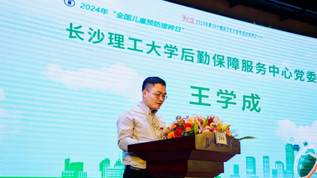 天心区卫健局、教育局、民政局、疾控中心、总工会、妇女联合会、妇幼保健所,天心区辖区各预防接种单位,我校后勤中心相关领导及师生代表共800余人参加了此次活动。