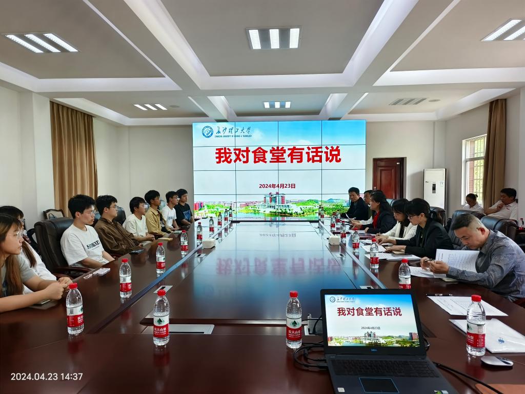 4月23日下午2:30,餐饮服务部在云塘校区节能平台会议室召开2024年第二期“我对食堂有话说”学生座谈会。后勤中心副主任邓应军,人事与质量监管办公室、餐饮服务部办公室、各食堂负责人以及来自食品与生物工程学院的18名食品专业学生代表参加了座谈会。会议由餐饮服务部主任阳伶主持。