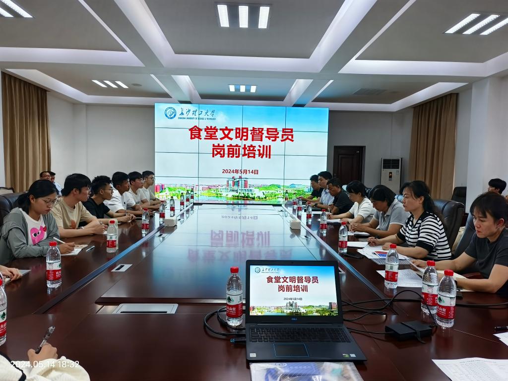 5月14日晚上,餐饮服务部在云塘校区节能平台会议室开展食堂文明督导员岗前培训。后勤中心副主任邓应军,餐饮服务部办公室、各食堂管理员及24名学生文明督导员参加了培训。会议由餐饮服务部主任阳伶主持。