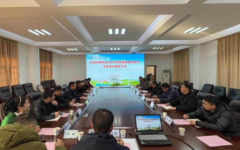 1月16日上午,中南林业科技大学后勤保障部部长兼保卫部部长张双利一行来我校调研交流。后勤中心班子成员及餐饮、物业、水电及校医院部门负责人参加座谈交流。
