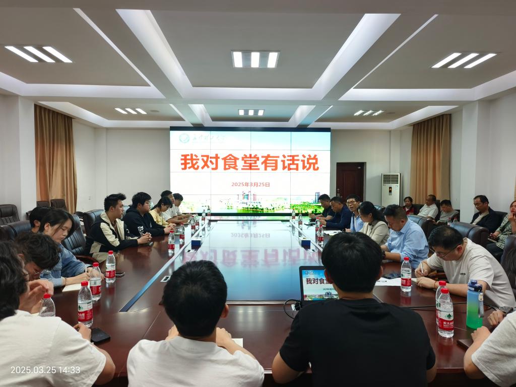 3月25日下午,餐饮服务部在云塘校区节能平台会议室召开2025年第一期“我对食堂有话说”学生座谈会。后勤中心副主任阳伶,人事与质量监管办公室、餐饮服务部办公室、各食堂负责人以及来自学校权益部、食堂文明督导员和后勤服务质量学生监管队20余名学生代表参加了座谈会。
