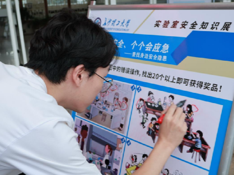 活动还设置了实验室安全知识展和安全知识竞赛环节,特别是“实验室安全百错图”现场吸引众多师生参与,参赛者需在2分钟内从安全场景图中找出20处以上隐患,挑战成功者即可获得奖品。师生一致表示这种找错游戏让安全规范变得直观可感。
