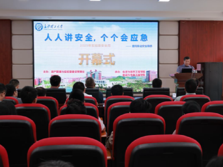 6月24日,在第24个全国“安全生产月”之际,为深入贯彻落实党的二十大精神和党中央、国务院关于安全生产工作的决策部署,深入学习贯彻习近平总书记关于应急管理的重要论述,全面落实学校关于校园安全工作的各项要求,进一步增强师生安全意识、提升应急处置能力,由资产管理与实验室建设管理处、保卫部主办、化学与医药工程学院和食品与生物工程学院承办的“人人讲安全,个个会应急”实验室安全周活动在工科三号楼A320会议室开幕。资产管理与实验室建设管理处副处长唐彬、化学与医药工程学院党委书记宋刘斌、食品与生物工程学院党委书记高顺利等出席活动,化学与医药工程学院副院长陈启杰主持开幕式,多个学院、部门相关负责人及师生代表150余人参加。
