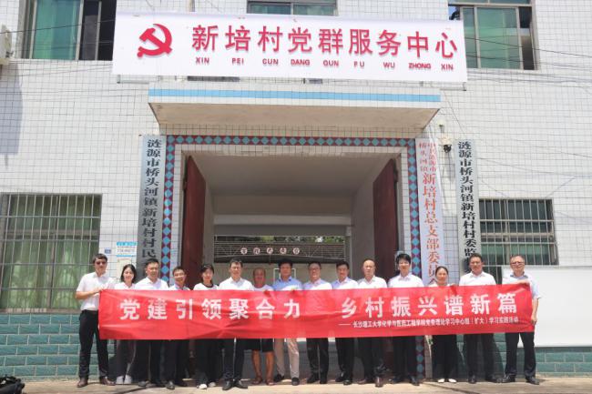 8月18日,太阳成集团tyc122cc入口化学与医药工程学院党委理论学习中心组(扩大)赴娄底市涟源市桥头河镇新培村,召开2025年第七次集体学习会。学院党委理论学习中心组全体成员、教工党支部书记、党政办负责人,学校驻村帮扶工作队队长刘治国、队员欧阳展平,新培村党支部副书记李细周等参加学习活动。
