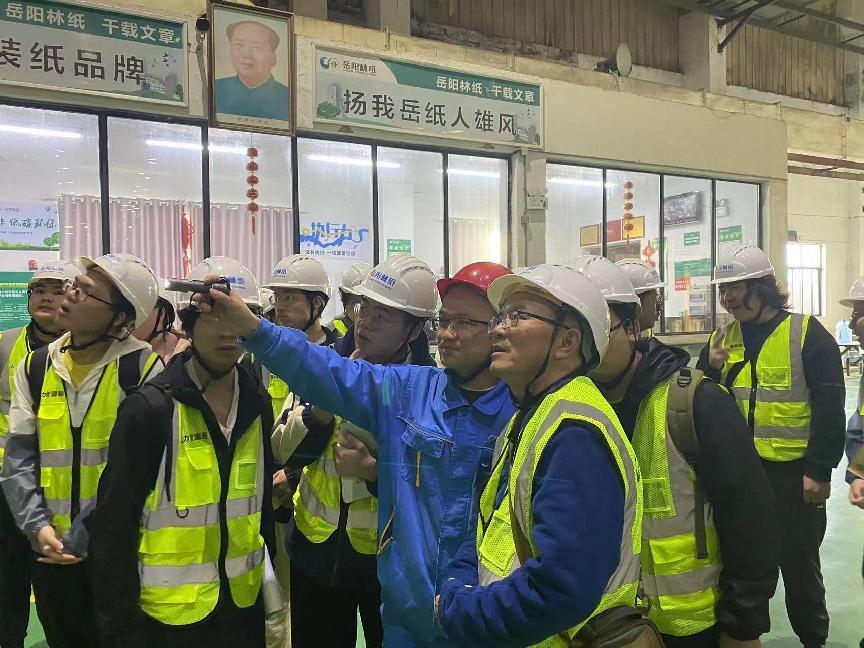近期,我院2021级轻化工程专业学生在张运雄、王玉珑等老师的带领下,在湖南省岳阳市岳阳林纸股份有限公司圆满完成了生产实习实践教学。岳阳林纸股份有限公司是目前唯一一家以林浆纸为主业的中央企业,岳阳基地建有制浆生产线、造纸生产线等配套设施,造纸产能约100万吨/年。同时,目前世界车速最高、单日产能最大、控制最先进的45万吨/年文化纸新建项目也在火热建设中。岳阳林纸注重人才培养,多年来与全国各大高校合作,为企业与行业培养了大批优秀的制浆造纸专业技术人才。