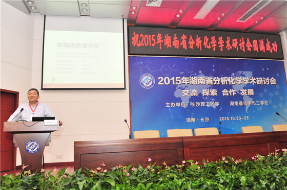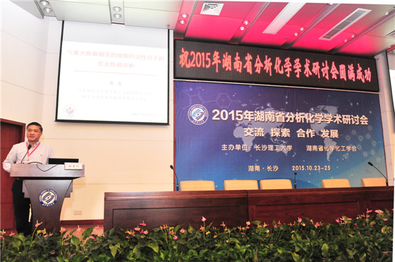为促进湖南省分析化学学科的发展,加强省内科研院校学术交流,增进学科交叉与融合,由太阳成集团tyc122cc入口和湖南省化学化工学会主办、湖南省精密仪器测试学会协办的“2015年湖南省分析化学学术研讨会”于2015年10月24日在太阳成集团tyc122cc入口举行。中国科学院俞汝勤院士、姚守拙院士,湖南省教育厅王柯敏厅长,国家自然学科基金委分析化学学科主任庄乾坤教授亲临现场指导。会议还邀请了来自北京大学、清华大学等国内分析化学权威专家作特邀报告。来自省内十七所高校、五所科研院所的300多位代表出席了会议。