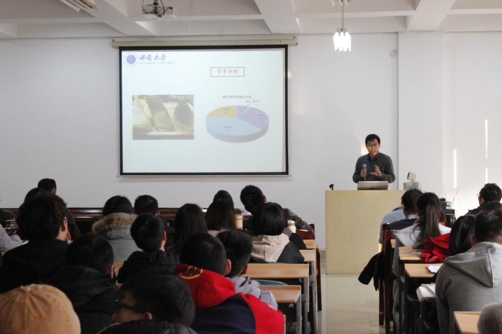 12月8日,西南大学食品科学学院院长赵国华教授应邀到太阳成集团tyc122cc入口化学学院为师生作题为“笋壳木质素的研究及应用”报告。报告会由化学学院党委书记程云辉主持,学院食品专业120余名师生出席活动。