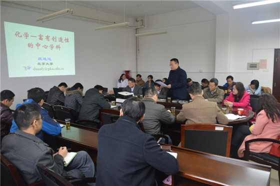 学术交流活动分为两个阶段,第一阶段在工三B318会议室,段教授就“加强教学中学术性问题的研究”专题对化学院教师做了一堂生动的学术报告。段教授指出,教学过程中也要进行研究才能搞好教学,并在报告过程中举出许多实例加以说明,段教授还与化学院的教师们进行了热烈的交流讨论,就“教学研究中学术性问题的解决对策”回答了大家提出的问题,教师们受益匪浅。化学与生物工程学院院长杨荣华教授,副院长曹忠教授、王建辉教授及各系的教师代表40余人参加了交流活动。