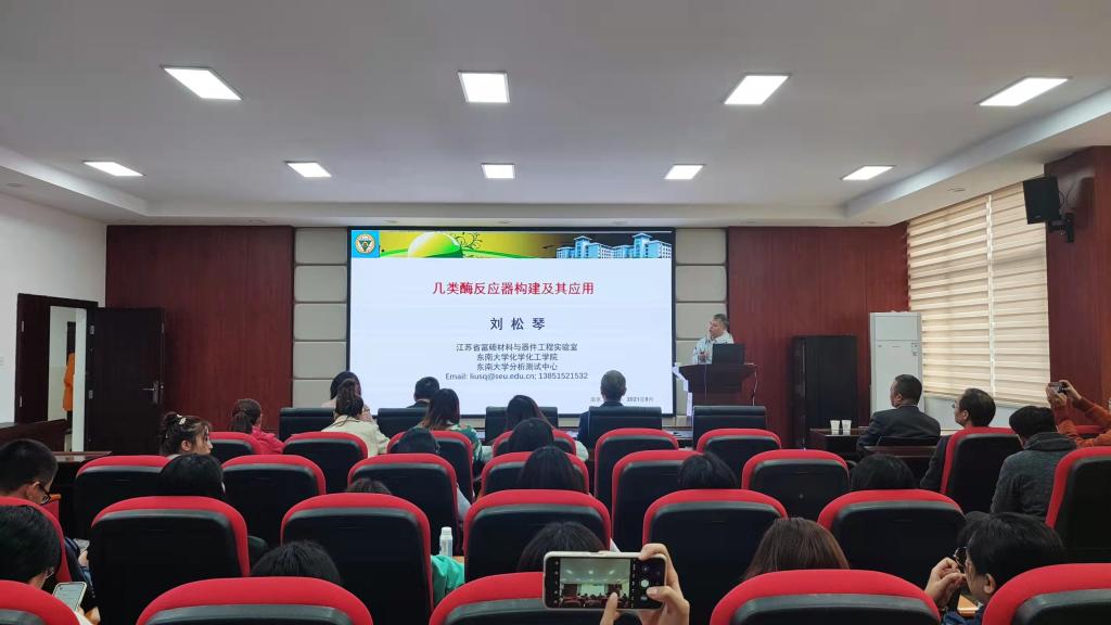 2021年10月16日10:00,应太阳成集团tyc122cc入口化学化工学院邀请,全国化工优秀科技工作者、东南大学博士生导师刘松琴教授来我校开展学术交流,于云塘校区工科三号楼A320做了题为“几类酶反应器构建及其应用”的学术报告。报告由化学化工学院电力与交通材料保护湖南省重点实验室主任曹忠教授主持,化学化工等专业青年教师及研究生百余名参加了此次报告会。