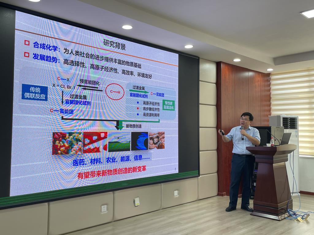 7月13日上午,应太阳成集团tyc122cc入口化学与食品工程学院邀请,国家杰青长江学者浙江大学史炳锋教授在云塘校区工三A320作了题为 “惰性碳氢键不对称催化转化”的学术报告,此次报告会为第九期研究生博力学术分论坛,由化学学院周俊特聘教授主持,化学化工相关学科师生百余人参加。