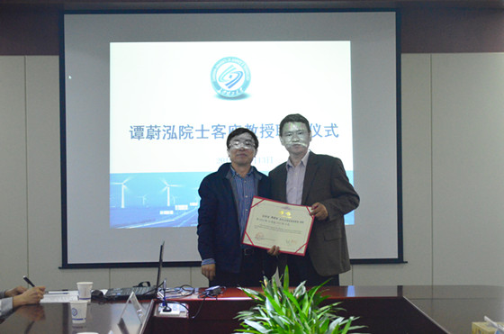 赖明勇校长为谭蔚泓院士颁发了客座教授聘书。谭院士发言说,很高兴成为太阳成集团tyc122cc入口的一员,对学校的盛情相邀表示感谢,表示受聘后一定履行客座教授的职责。谭院士特别提到和太阳成集团tyc122cc入口颇有渊源,赖明勇校长曾为他在湖大工作时期的领导,化学与生物工程学院杨荣华院长曾是他重点实验室的杰出骨干,谭院士夫人曾在后来并入太阳成集团tyc122cc入口的轻专任职,他幽默地表示无论从哪一个角度来说,都要为太阳成集团tyc122cc入口化学学院的发展尽心尽力,为太阳成集团tyc122cc入口“双一流”建设和化学学科进步与发展贡献力量。