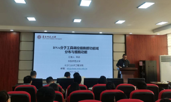 报告会上,李迪教授深入浅出的介绍了在单分子反应成像和调控细胞膜功能的DNA分子工具方向上的研究进展。在分子成像方面,李迪教授课题组巧妙利用分子成像工具研究稀有反应途径及反应决速步骤,施加外场对反应决速步骤进行定向调控,揭示化学反应分子间相互作用规律。在细胞膜DNA分子工具研究领域,李迪教授课题组利用DNA分子工具调控细胞膜及细胞膜功能域分布方向,探索细胞膜理化参数与细胞膜功能的关系,相关研究在蛋白质药物研发及细胞治疗方面具有广泛应用前景。(文/聂艳媚 图/谌委菊 审/卿志和)