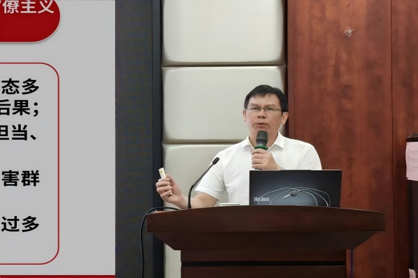 针对作风建设的实践性要求,张跃飞特别选取多起违反中央八项规定精神的典型案例,结合高校学生党员实际,分析了形式主义、官僚主义等问题在日常学习、工作中的潜在表现。他强调:“作风建设是党的生命线,关系事业成败与青年党员形象。作为学生党员,必须从自身做起、从小事严起,以‘马不离鞍、缰不松手’的韧劲严守纪律底线,坚决杜绝松劲歇脚、疲劳厌战情绪。”