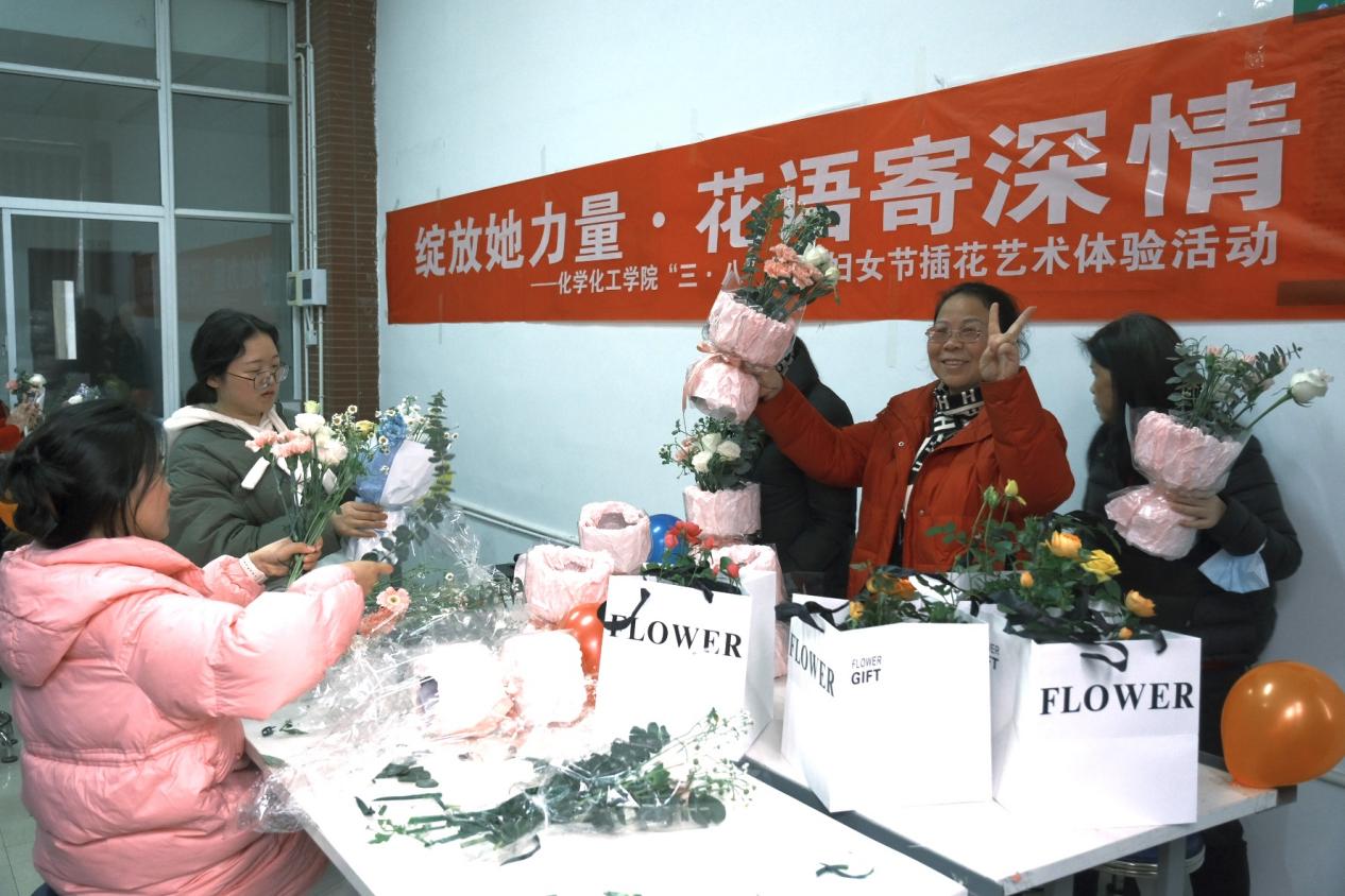 整个活动现场洋溢着欢声笑语与芬芳花香,通过亲手插花的方式,让老师们感受到春天的美好与生命的力量,也是希望借此机会向广大女性表达节日的祝福与关爱。通过这次插花活动,不仅丰富了校园文化生活,拉近了教职工之间的情感距离,更加增强了校园的节日氛围,让这个特殊的节日充满了艺术之美和人文之暖,激励着学院全体女性在未来的工作生活中持续发光发热,绽放更加绚丽的光彩。相信在未来,化学化工学院还将举办更加丰富多彩的活动,为广大教职工带来精彩的校园生活。(图文/张航 一审/李焰二审/喻林萍三审/宋刘斌)