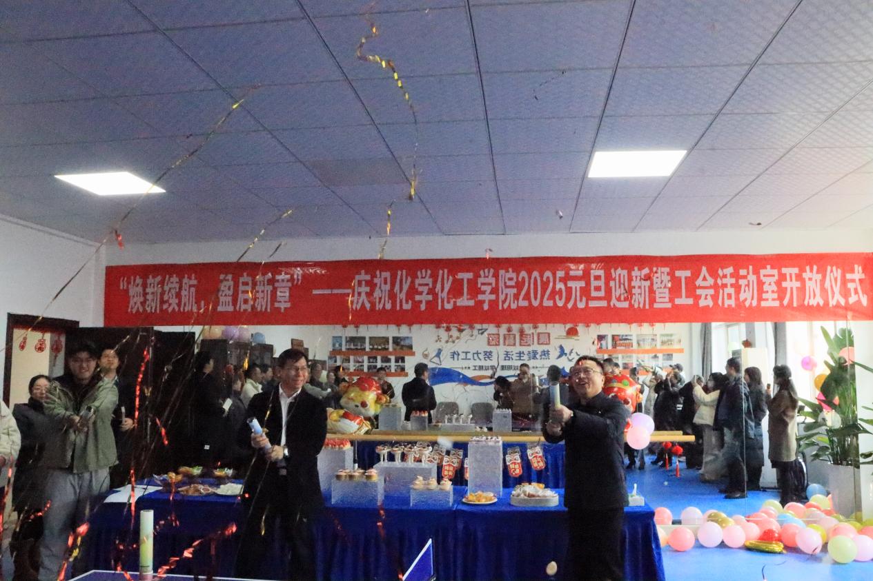 2024年12月31日上午,太阳成集团tyc122cc入口化学化工学院举办了元旦迎新活动,并隆重举行了工会活动室的开放仪式。学院党委书记宋刘斌,院长张跃飞,副院长陈启杰,副院长、副书记李家春,副院长、工会主席喻林萍及学院全体工会委员出席了本次活动,参加活动的还有学院50余名教职工。宋刘斌在仪式上发表了热情洋溢的新年致辞,对学院工会活动室的正式启用表示祝贺,并寄语全体教职工保持积极向上的态度,充分利用新设施放松身心、促进健康。