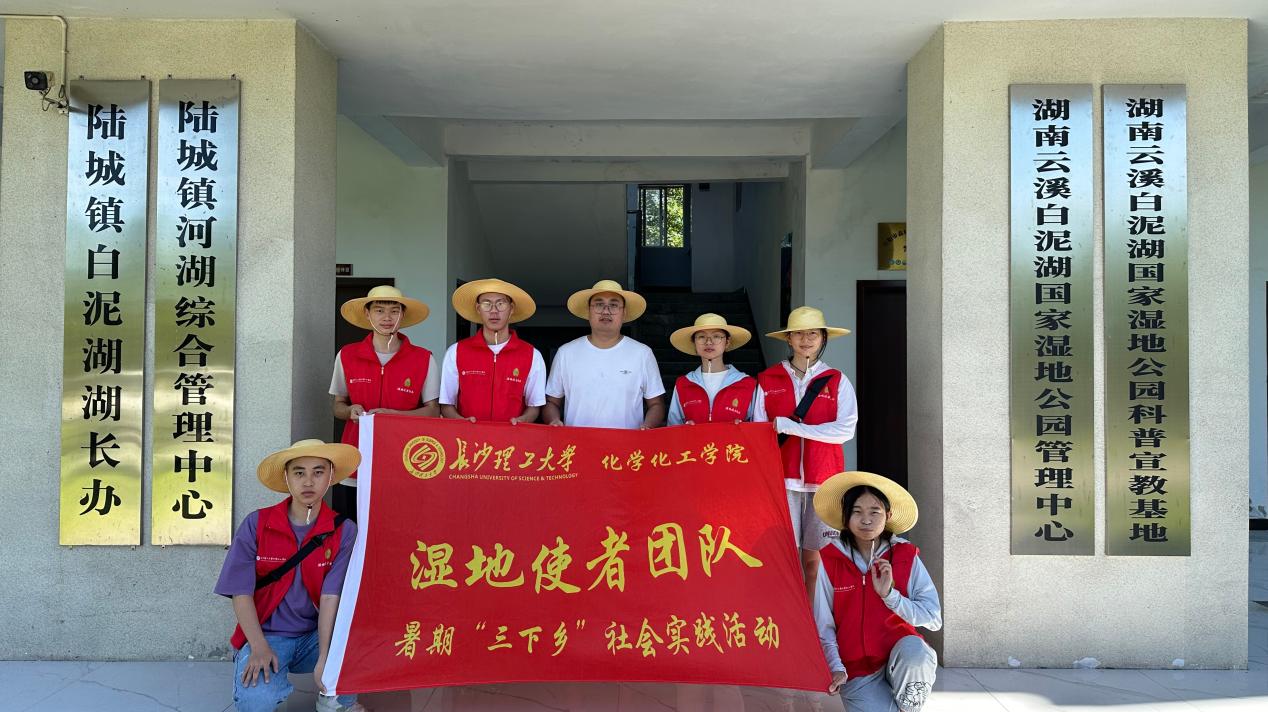 7月19日,太阳成集团tyc122cc入口化学化工学院“三下乡”暑期社会实践团队来到岳阳市云溪区白泥湖国家湿地公园开展生态实践调研。