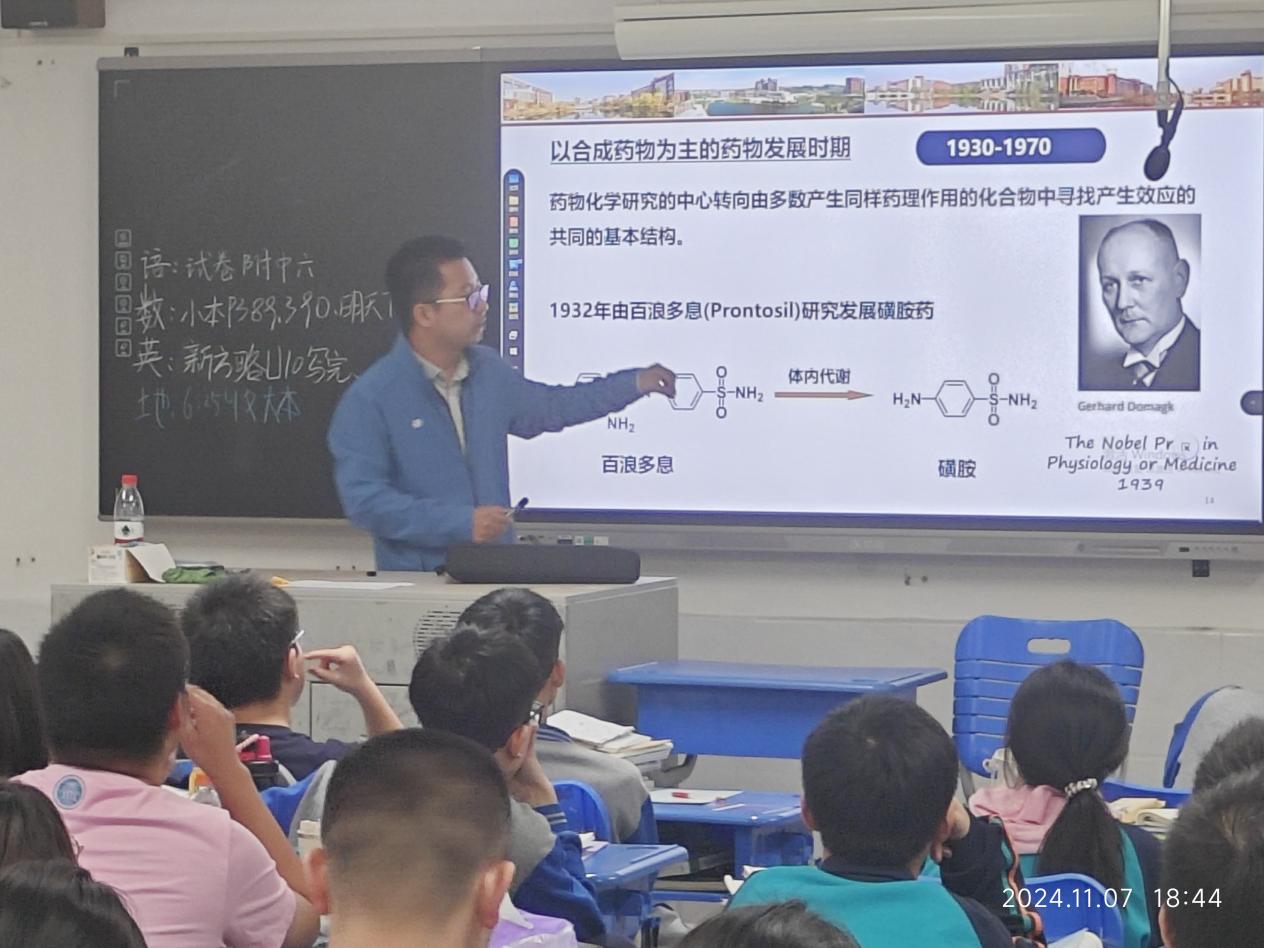 在活动中,化学化工学院的罗文坤博士为弘益中学的高三学生进行了主题为“化学生物学领域发展情况”的专题讲座。罗文坤深入浅出地介绍了化学生物学作为交叉学科的最新研究成果及发展趋势,讲解了该领域在现代医学、环境保护、能源利用等多个方面的重要应用,激发了同学们对化学与生物学结合的浓厚兴趣。讲座内容不仅涵盖了化学生物学的基础知识,还强调了该学科对未来社会发展的积极影响,展现了化学化工专业的广阔前景。