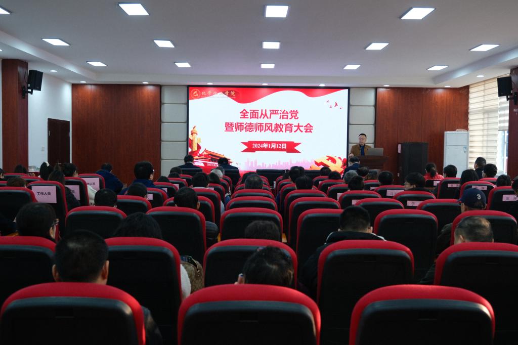 副院长陈启杰解读了《关于加强2024年元旦春节期间正风肃纪有关工作的通知》精神,重申了《新时代高校教师职业行为十项准则》,剖析了近期师德师风警示典型案例,强调全体教工要加强师德学习,严于律己,时刻自重、自省、自警、自励。