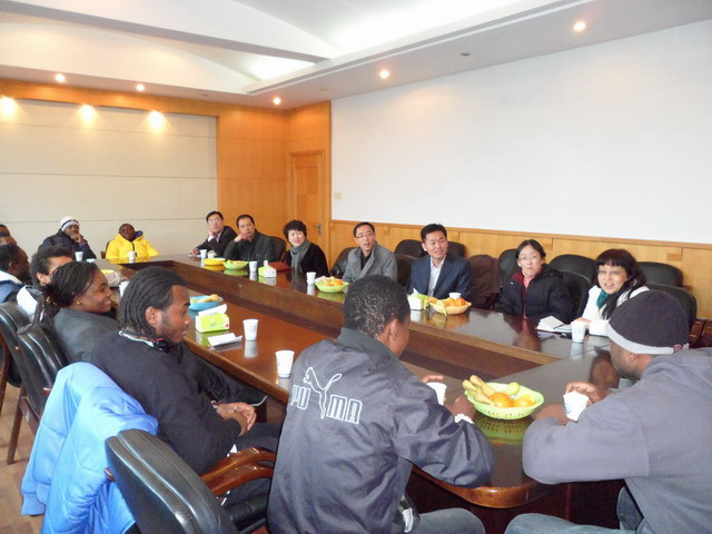 Four in the afternoon, a meeting with students from Equatorial Guinea was held at the No.3 Conference Hall in Jinpenling campus. To begin with Mrs.Xie expressed her gratitude for the training provided by China Road and Bridge Corporation, then she briefly introduced the life and study of students from Equatorial Guinea in our school in the past two years. Mr. Li showed his concerns to the students from Equatorial Guinea, hoping that they study hard and finish their study so as to contribute their own share to the development of their motherland and play positive role in the more and more extensive cooperation between our two countries. Mr. Song sent the greetings from their family members to the oversea students and encouraged them to work hard. Later the students from Equatorial Guinea gave speeches in Chinese in turn. They shared their experiences in China and expressed their gratitude toward the corporation and the school.