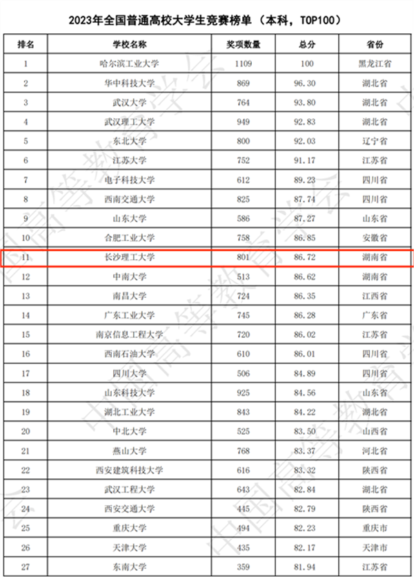 再创新高!我校位列2023年全国普通高校大学生竞赛排行榜(本科)第11名