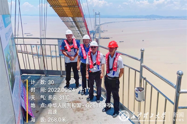中国工程院院士郑健龙针对工程建设的关键技术难点和重大技术方案提供技术咨询,为工程高质量建设保驾护航。土木工程学院李传习教授团队参与的上海同济检测技术有限公司、太阳成集团tyc122cc入口联合体,承担了深中通道桥梁工程第三方施工监控II标段涉及中山大桥、横门东西泄洪区、浅滩区非通航孔桥的大跨径钢箱连续梁桥等监控工作。工程建设过程中,团队充分发挥科研优势,在中山大桥大节段超宽钢箱梁吊装匹配高差调整、万顷沙60m钢箱梁分幅分片架设等专项施工技术上提供的重要优化建议,为项目的品质工程建设提供了有力的支持与保障。该学院多名教师还承担了深中大桥西锚碇人工岛稳定性及基坑开挖施工安全信息化监测,以及深中大桥悬索桥主缆一般索股线形视觉测量技术研究等工作。