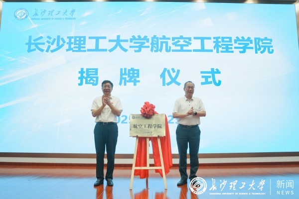 在全场嘉宾的共同见证下,向锦武和付宏渊为航空工程学院揭牌。湖南省低空经济发展集团有限公司董事长刘斌和刘朝晖签署校企战略合作协议,校企双方将在低空经济领域人才培养、技术研发和成果转化等方面开展深入合作。