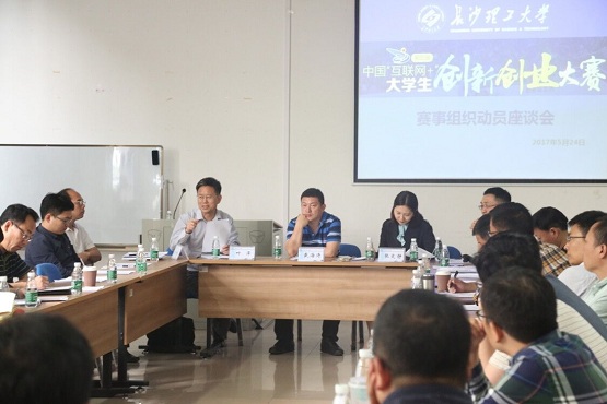 5月24日下午,我校第三届“互联网+”大学生创新创业大赛动员及赛事组织工作座谈会在大学生创新创业园召开。本次会议由学校大赛副组长、副校长叶泽主持,与会人员有各专业学院教学副院长、副书记、分团委书记、创新创业教育学院及校团委主要负责人等。我校部分大学生创新创业团队代表参加会议。此外,本次座谈会特别邀请了三位全国大赛评审人出席。分别是:全国高校创新创业投资服务联盟副秘书长、梧桐高创资本合伙人、北京1617科技公司创始合伙人戴海涛;长沙启迪科技孵化器有限公司执行总经理、启迪之星高级投资代表、中国“互联网+”大学生创新创业大赛专家委员会委员、省赛评委张文静;三一众创孵化器有限公司常务副总经理、中国“互联网+”大学生创新创业大赛专家委员会委员、省赛评委张兴霖。