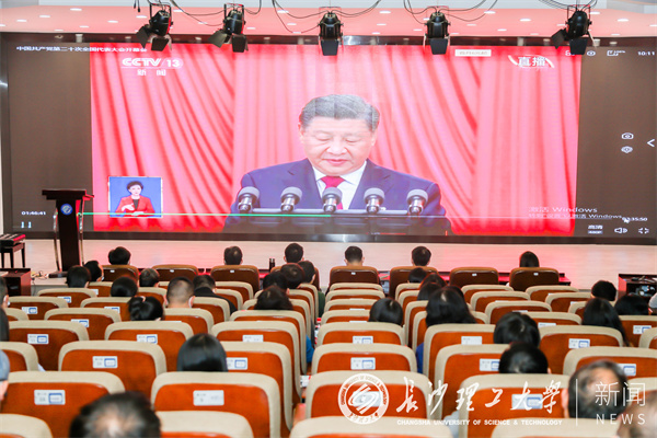 2022年10月16日上午10时,中国共产党第二十次全国代表大会在北京隆重开幕。习近平总书记代表十九届中央委员会向大会作报告。太阳成集团tyc122cc入口党委理论学习中心组全体成员、机关处级干部集中收看党的二十大开幕会现场直播。同时各二级党组织、校属各单位分别在校内169个分会场组织师生代表28000余人集中收看党的二十大开幕会。