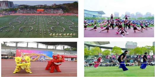 2.赋予校运会更为丰富的内涵。通过开幕式大型团体操集中展示体育特色课程建设、优秀体育协会(社团)等学校体育发展成果,且每年均以师生需求为导向持续丰富“校运会”项目设置,创新或调整 1-2 项竞赛项目,在传统田径项目普及开展的基础上,增加师生接力、袋鼠跳、跳绳、飞盘等师生喜闻乐见的趣味性体育运动,增加师生融合度。