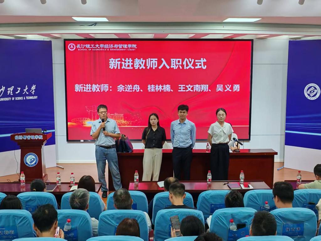 大会分为两个议程,首先举行了新进教师入职仪式。院长彭新宇为今年以来新入职的四位教师送上入职大礼包。新入职教师吴义勇、余逆舟、王文南翔、桂林楠依次进行了自我介绍,表达了对加入经管大家庭的喜悦和对未来工作的期待。