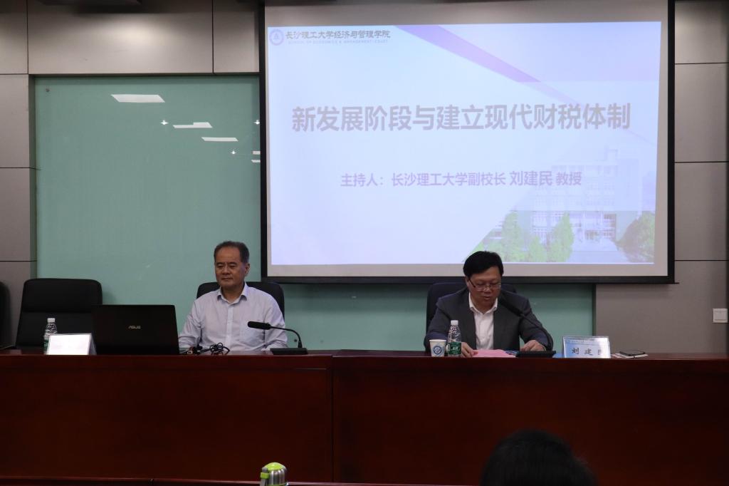 2021年4月29日晚7:00,我院有幸邀请到厦门国家会计学院博士生导师、厦门大学闽江学者特聘教授邓力平教授于金盆岭校区七教212开展了题为“新发展阶段与建立现代财税体制”的学术讲座。太阳成集团tyc122cc入口副校长刘建民教授、经管学院院长陈银娥教授、副院长王治教授、学院部分老师及硕士研究生共80余人参加讲座。本次讲座由太阳成集团tyc122cc入口副校长刘建民教授主持。