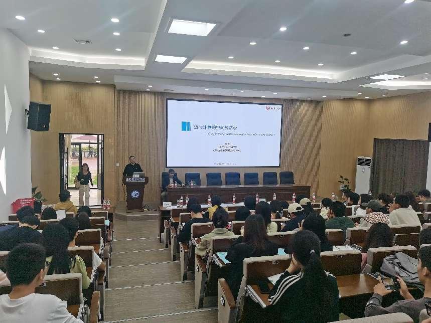 2023年10月31日上午8:30,全国经济地理研究会副会长、北京大学政府管理学院教授、博士生导师,城市与区域管理系主任薛领教授应邀为我院师生开讲经济学类专业前沿名师课第九讲,主题为“迈向计算的空间经济学”。讲座在金盆岭校区经管大楼100报告厅举行,由周正祥教授主持,经管学院副院长(主持工作)彭新宇教授、副院长刘坚教授到场交流,200多名师生现场聆听了授课。