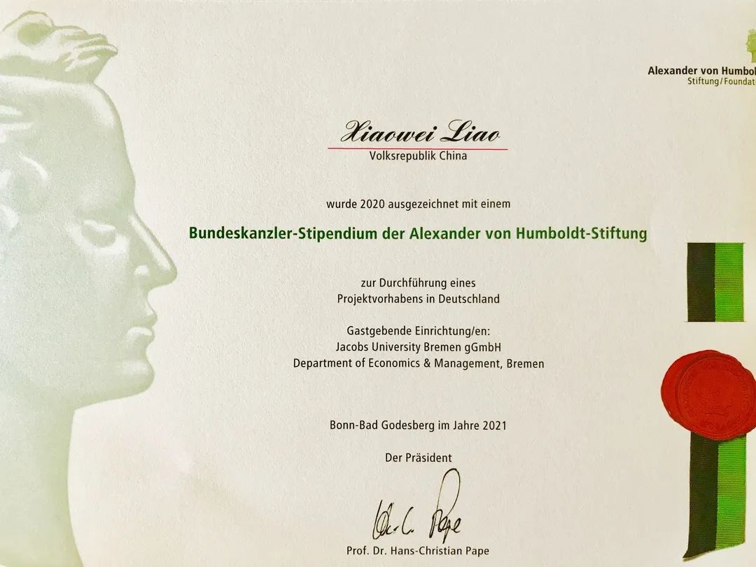 ? 获德国联邦总理奖学金,成为该期获此殊荣的全球50名青年获奖人之一,并在德国总理府接受时任总理默克尔的接见(2021.07)