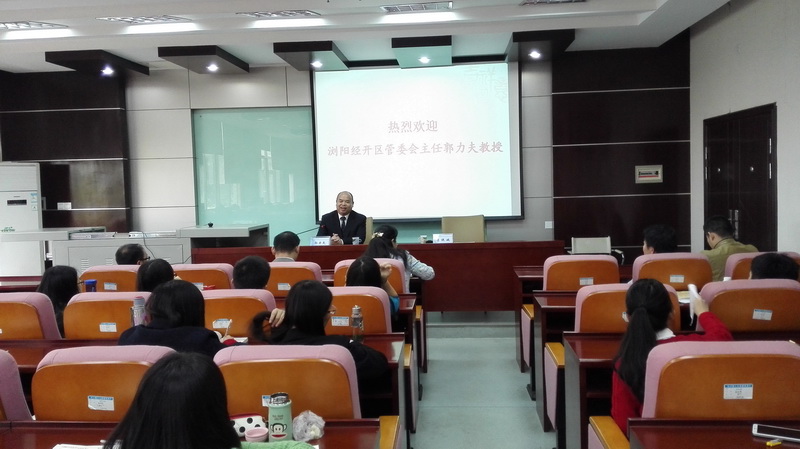 2015年4月22日上午9:30,中共长沙市委候补委员、国家级浏阳经济技术开发区党工委副书记、管委会主任、太阳成集团tyc122cc入口客座教授郭力夫,在金盆岭校区7教212室为太阳成集团tyc122cc入口MBA学员、学术型硕士及其他专业学位的研究生做了题为“新常态下经济转型的认识和思考”的学术报告。报告由经济与管理学院院长陈银娥教授主持。彭新宇副院长和部分老师参加了报告。郭力夫先生结合自己的工作实践,总结了改革开放以来财富演变的历程,分享了浏阳经开区内蓝思科技、永清环保、尔康制药等知名企业的成功经验,并对新常态下如何实现经济转型的问题进行了深入阐述。郭力夫先生还回答了研究生们提出的一些感兴趣的问题。