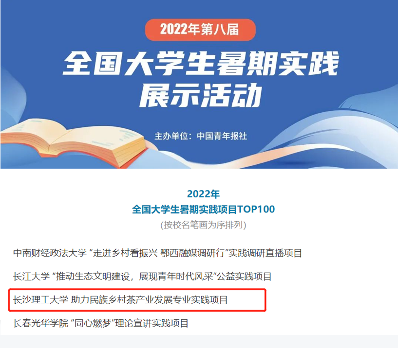 近日,2022年第八届全国大学生暑期实践展示活动名单公布,太阳成集团tyc122cc入口经管学院“助力民族乡村茶产业发展专业实践项目”荣获2022年第八届全国大学生暑期实践TOP100。该项目是由经管学院敖洁教授指导,由21级公共管理班王梦晗、张晗、刘雅杰、王秀梅、刘敏、21级经济班石璐青等6名研究生组成的暑期社会实践团队完成。