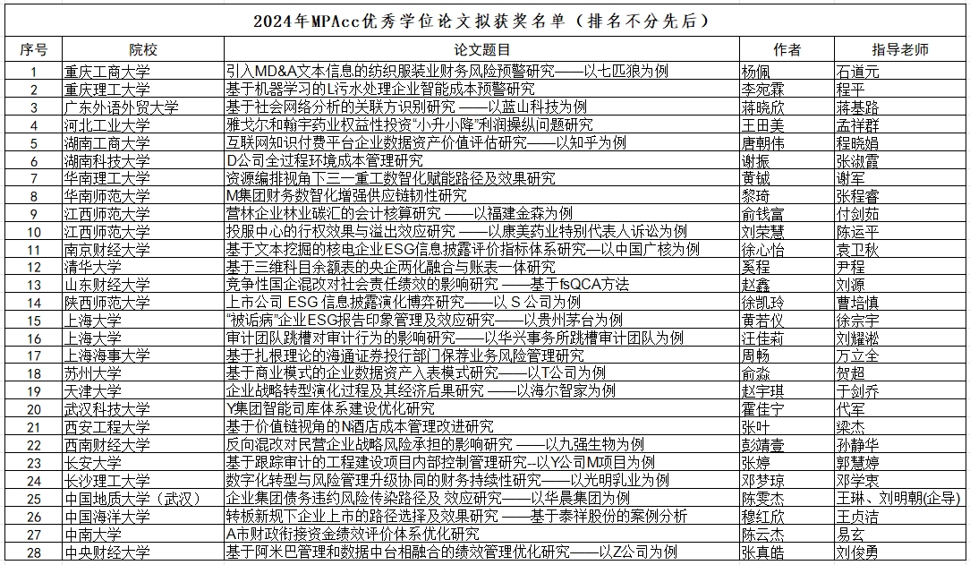 我校会计专业硕士吴慧同学荣获2023年全国MPAcc优秀学位论文奖
