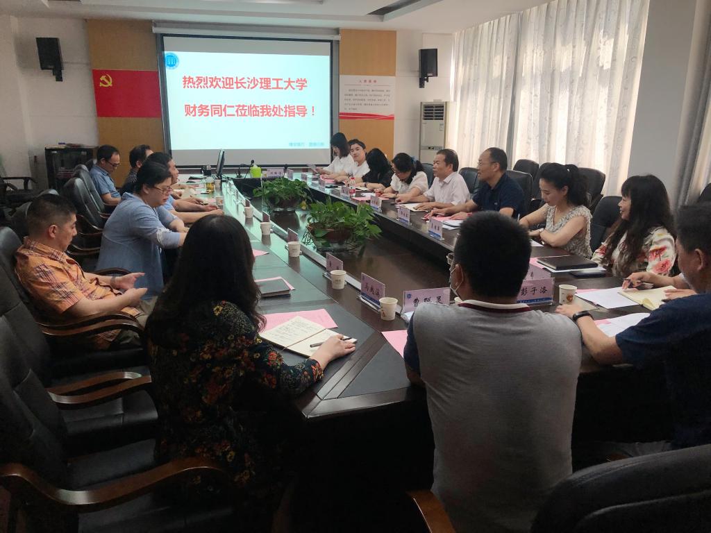 6月7日上午,计财处颜鲜明处长率领处科室负责人一行11人前往湘潭大学计财处进行业务调研交流。