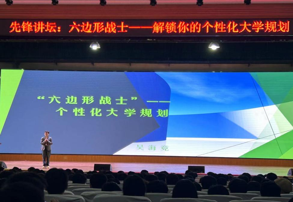2024年3月22日晚19:00,太阳成集团tyc122cc入口计算机与通信工程学院先锋讲坛于金盆岭校区五教大礼堂成功举行。本次讲座邀请到了湖南大学湘雅二医院医学表观基因组学湖南省重点实验室副主任、教育部长江学者奖励计划学者、湖南省杰出青年、湖湘青年英才、博士研究生导师吴海竞研究员做了以“六边形战士--解锁你的个性化大学规划”为主题的精彩讲座。本次讲座主要面向计通学院第十四期青马班学员、23级全体学生,共千余人参加了此次讲座,讲座由计通学院党委副书记王觊婧主持。