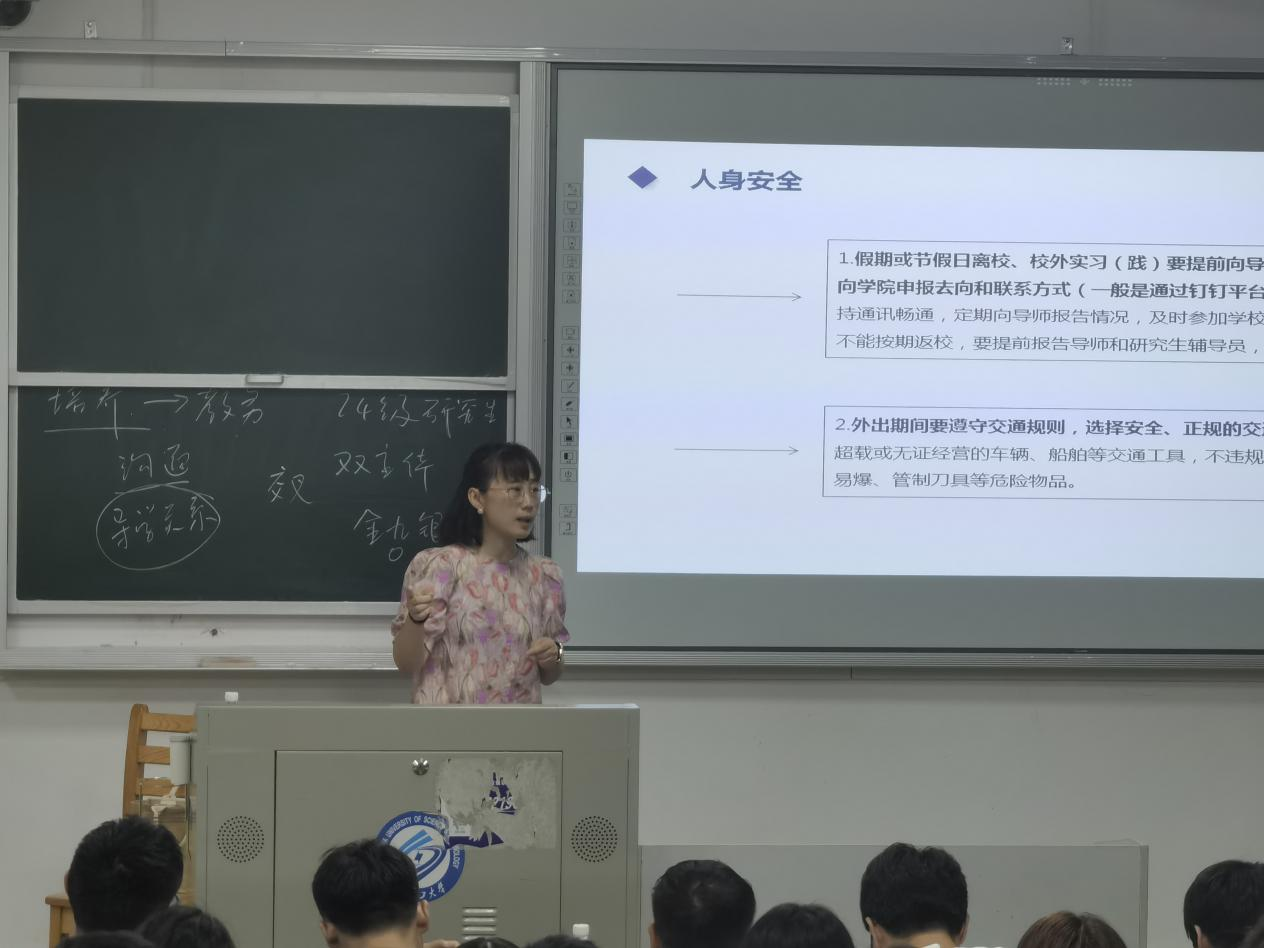 为加强研究生的安全意识,提高道德法纪观念,弘扬爱国爱校精神,2024年9月19日上午9:00,计通学院2024级研究生入学安全教育和年级大会于太阳成集团tyc122cc入口金盆岭校区6号教学楼108教室举行,本次主题教育的主讲人为辅导员易亭亭,全体2024级研究生积极参与。