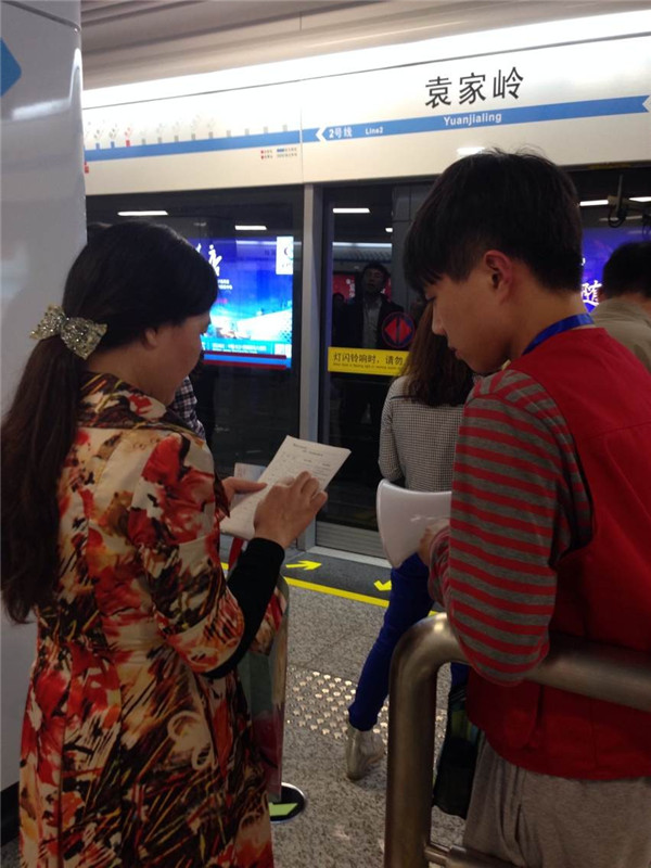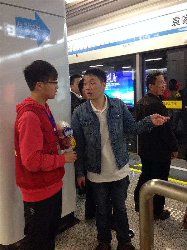 2014年5月3日,正值五一假期,交通客流量处于高峰期。为了缓解节假日所带来的交通压力,推进长沙文明城市建设,保障地铁安全有序运营,为广大市民出行提供高效优质服务,计算机与通信工程学院的地铁志愿者们早早就来到了地铁二号线的袁家岭站,开始准备一天的地铁志愿服务之旅。