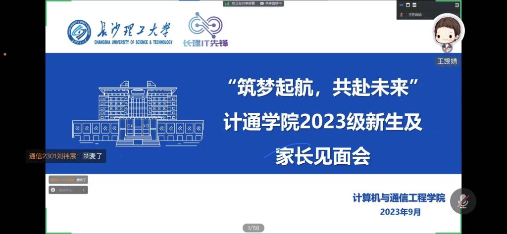 9月11日晚,计通学院通过腾讯会议线上直播的方式举行2023级新生及家长见面会,学院党委书记孔伟红、院长张锦、党委副书记王觊婧出席本次会议,学工办全体老师及627名新生及家长参加此次会议。