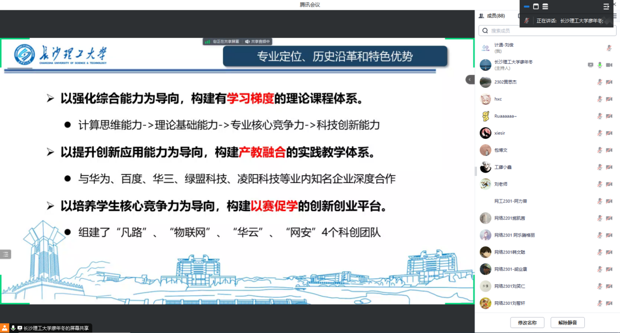 913日下午,计通学院各专业通过腾讯会议线上直播的方式举行2023级新生专业介绍大会,各班下班党员、下班团干及627名新生参加此次大会,会议由各系系主任主持。