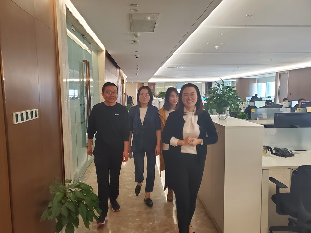 参观过程中,赢时胜的人事部门经理何胜男带我院访问团一行参观了企业的真实职场环境和员工生活环境,并介绍了企业的发展战略与人才需求规划。在深入了解了企业的发展前景和用工需求,认真听取了用人单位和毕业生对学院人才培养意见和建议后,涂道勇向企业介绍了学校和学院建设发展的总体情况和学院应届毕业生情况,表示希望为更多湘籍毕业生留在本地发展提供支持,为本土企业和湖南经济社会发展培养更多的人才。双方还就进一步加强学校和企业的合作以及学校和企业如何在人才供需上形成联动等方面达成了共识。为在我院的春招中取得更好的效果,涂道勇建议赢时胜公司采用我院最新的招聘模式,前期加大在待就业同学中的校招宣传力度,引导学生走进赢时胜参观,将宣讲会由学校改在企业的办公会现场举行。何经理对赞助我院的考研出征誓师大会表示出了极大的兴趣,并希望由赢时胜承包赞助物质,形成一个重要的校招宣传窗口和品牌效应。