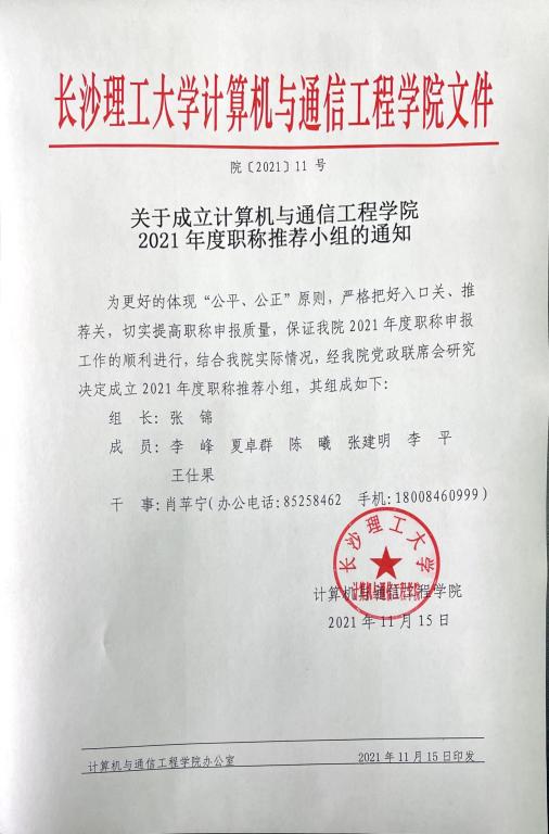 关于成立计算机与通信工程学院2021年度职称推荐小组的通知
