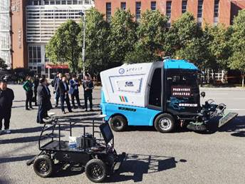 图5 智能网联汽车自动避障演示 图6 智能道路与车路协同校园示范线路演示